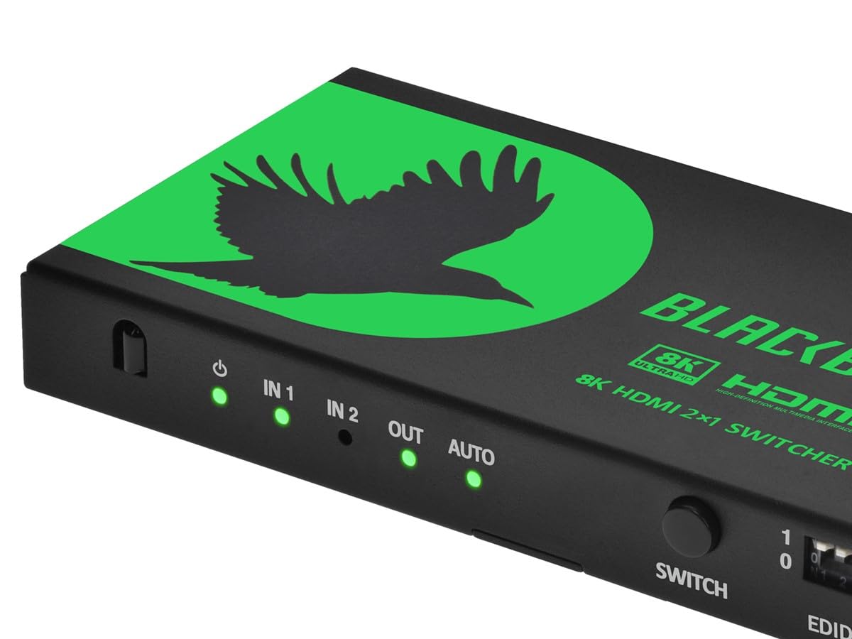 Monoprice 2x1 HDMI Switch with Audio Extraction, 8K@60Hz, 4K@120Hz, HDMI 2.1, HDCP 2.3, 40Gbps, IR Remote Control, HDR10+, for 4K UHD TV, PS5, Xbox Series X, Fire TV, Roku - Blackbird Series