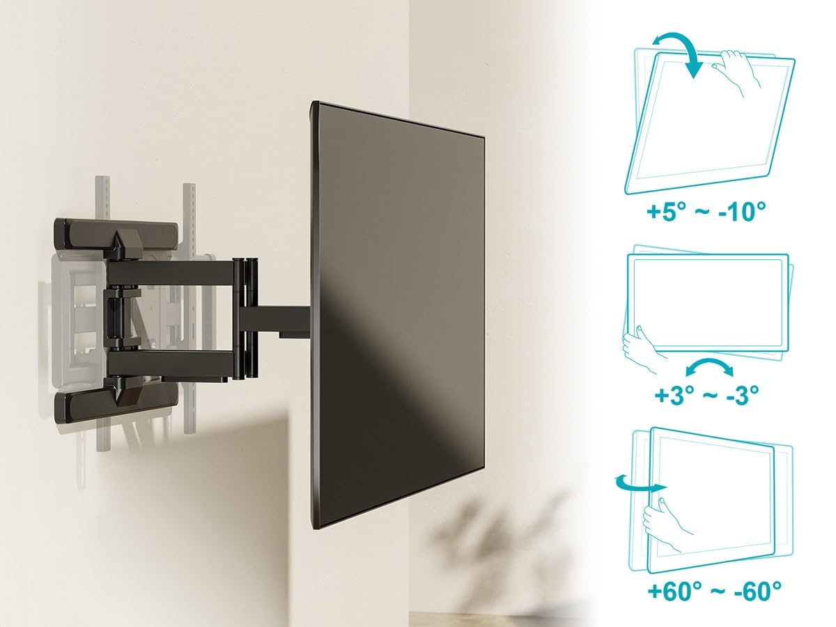 - Slim design: The space-saving, slim design places your TV just 1.6in out from the wall, but can be extended out to a full 18.7in to allow easy access to ports and cables, and to provide the space for 60 degrees swivel angles.