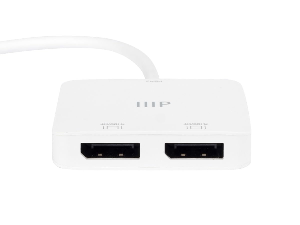 Monoprice USB-C to Dual 4K DisplayPort Adapter (Dual 4K@60Hz) HDR, Supports MST, SST, and Mirror Modes, Portable, Compatible with Thunderbolt 3 Devices with Windows and MacOS,White